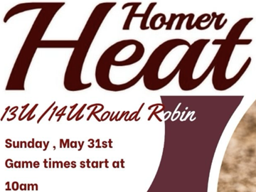 Homer Heat 13U softball will host a Round Robin on May 31, 2026 for 13/14U B/C Teams.
